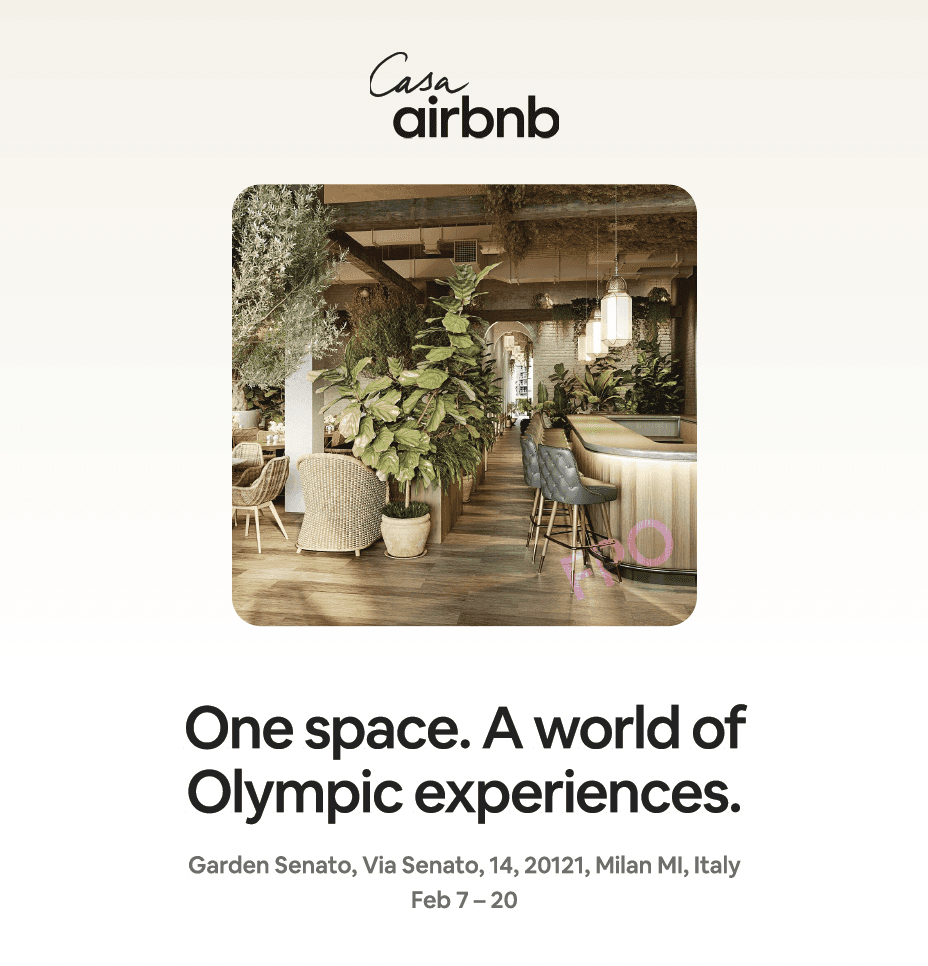 Since Casa Airbnb was a brand-new hospitality experience created for the Milan Olympic Games, the campaign needed to build awareness of the space, highlight the range of programs, and create enough excitement to drive registrations all while supporting multilingual audience.